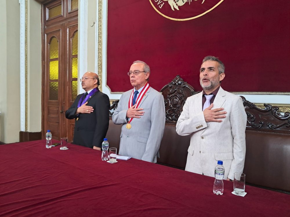 La Ceremonia de Inauguración del Año Académico 2026, realizada en el Paraninfo, contó con la participación del vicedecano Académico, doctor Rolando Vásquez Alva, y del director de la Unidad de Investigación, doctor Heli Barrón Pastor. Asimismo, reunió a directivos, docentes, estudiantes y trabajadores administrativos de la Facultad de Medicina.
