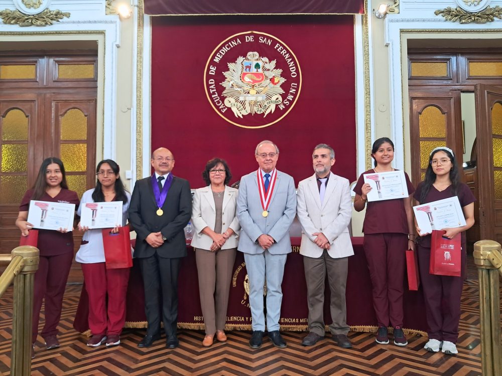 Uno de los momentos más significativos de la jornada fue el reconocimiento a los estudiantes de las cinco escuelas profesionales de la Facultad que obtuvieron el primer puesto de sus respectivas promociones durante el año académico 2025, de acuerdo con la información proporcionada por la Unidad de Matrícula, Grados y Títulos.