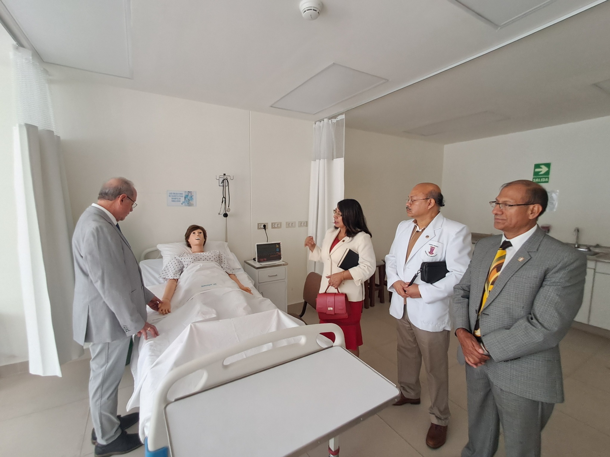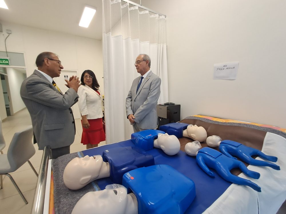 Guiados por la directora de la escuela, doctora Juana Cuba Sancho, las autoridades recorrieron ambientes que recrean desde la atención primaria hasta escenarios de alta complejidad. En una misma jornada, un estudiante puede simular una visita domiciliaria, responder a una emergencia con reanimación cardiopulmonar o asistir un parto, todo en condiciones controladas pero realistas.