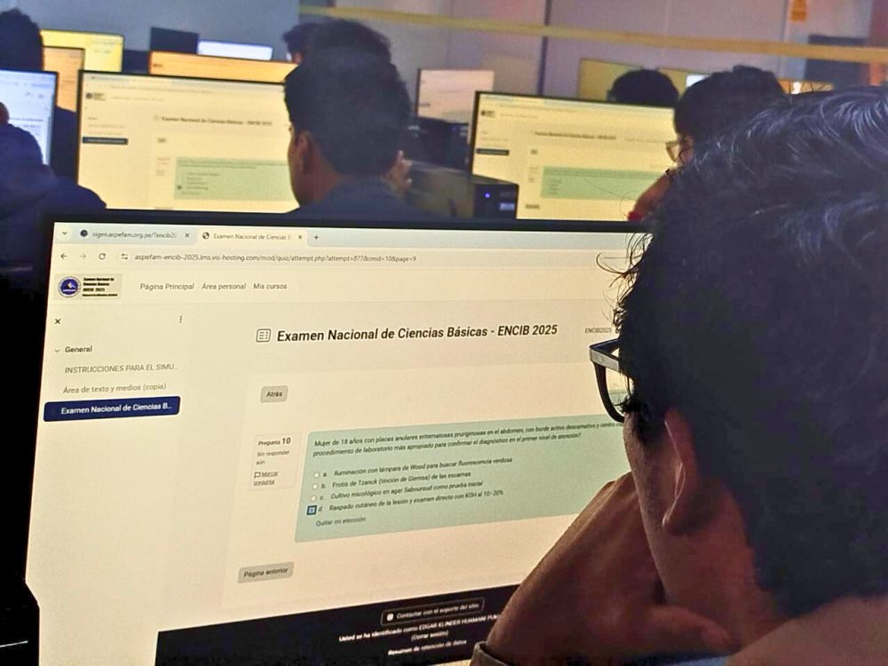 El examen se desarrolló en nuestra casa de estudios, con la presencia del Dr. Héctor Pereyra Zaldívar, Director de la Escuela Profesional de Medicina, y del Dr. José Amado Tineo, coordinador del ENCIB en San Fernando, quienes felicitaron y reconocieron el compromiso de los participantes.