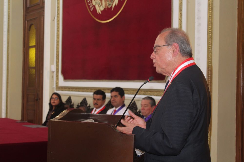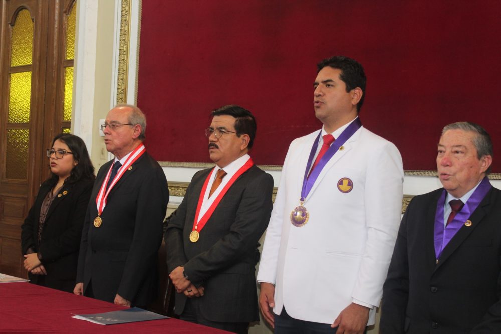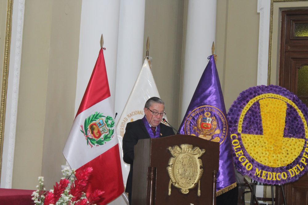 Por su parte, el decano del Colegio Médico del Perú, Dr. Pedro Riega López, resaltó que Daniel Alcides Carrión simboliza la unión entre la ciencia y el compromiso social, al buscar el origen etiológico de las enfermedades en una época en que la investigación médica era incipiente. Enfatizó, además, que su legado representa los más nobles valores de los sanmarquinos y debe guiar la labor de los médicos ante los retos actuales del sistema sanitario y de la educación médica.