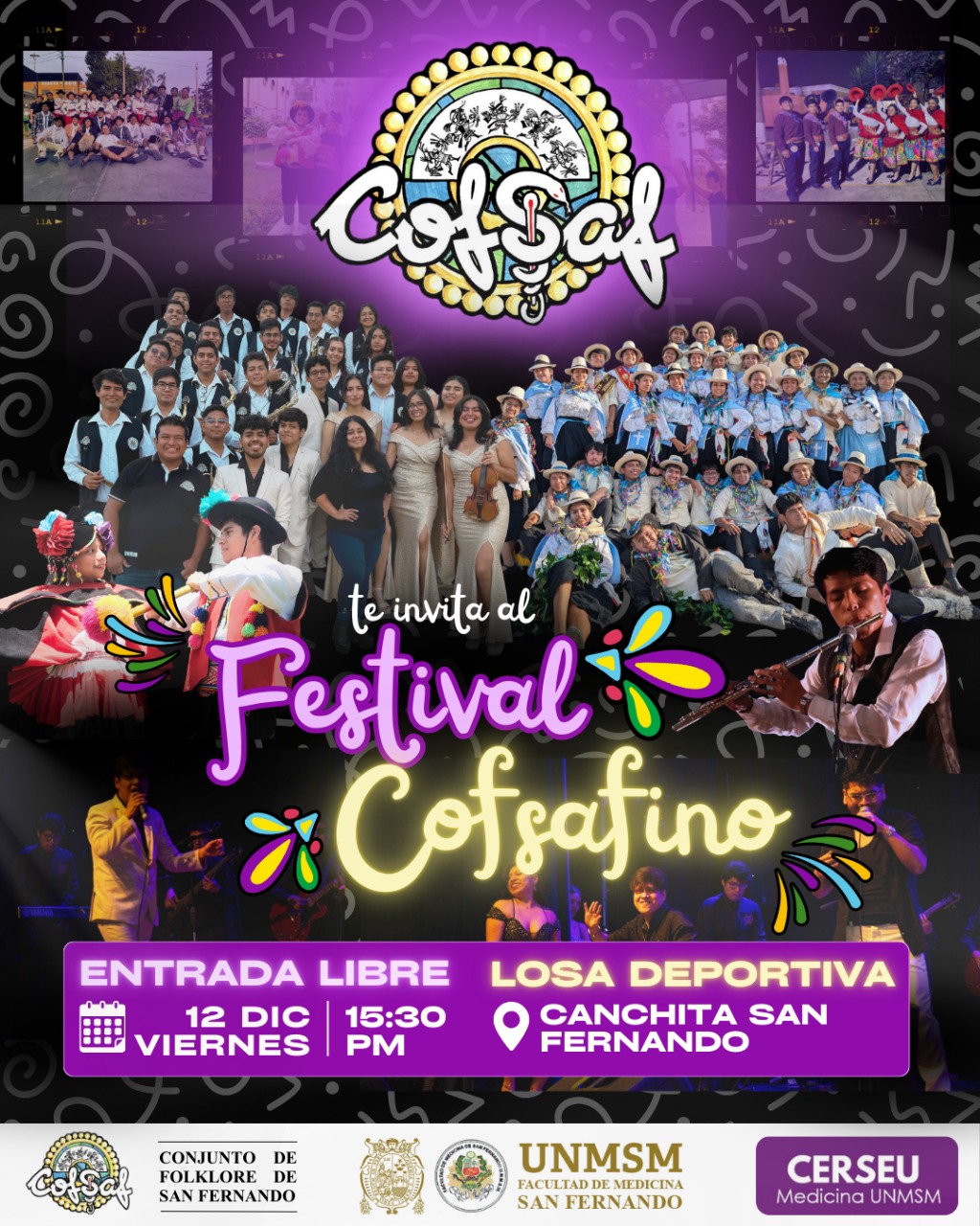 INVITACIÓN “Festival Cofsafino” 00días 00horas 00minutos 00segundos FechaDic 12 2025 Hora 3:30 PM Categoría Facultad de MedicinaCompartir este evento